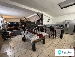 - 2eme maison (120.3m²) louée 690/mois + 20 TOM qui se compose d'une entrée/cuisine, pièce de vie (salon/salle à manger), quatre chambres, WC et salle d'eau. Terrain clôturé