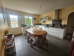 ? Maison 1 (env. 144 m² libre au 1er février) : Cuisine aménagée/équipée, salon avec insert, bureau, 3 chambres, 2 salles d'eau, garage, lingerie, chaufferie. Chauffage par pompe à chaleur (2023) + ballon thermodynamique.