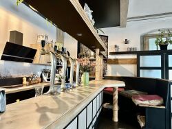 Ein ehemaliges Bar-Restaurant, geschmackvoll renoviert und zu einem gemütlichen und originellen Wohnraum im Loft-Stil umgebaut, bietet ein großes Wohnzimmer mit authentischer Bar, eine voll ausgestattete, individuelle Küche.