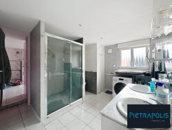 Au rez-de-chaussée : vous découvrirez une spacieuse pièce de vie d'environ 67 m2 comprenant un salon, une salle à manger et une cuisine ouverte moderne, idéale pour recevoir. Une chambre, une buanderie, un dressing, une pièce d'eau et ses toilettes avec un accès direct à une grande terrasse d'environ 90m2 complètent ce niveau.