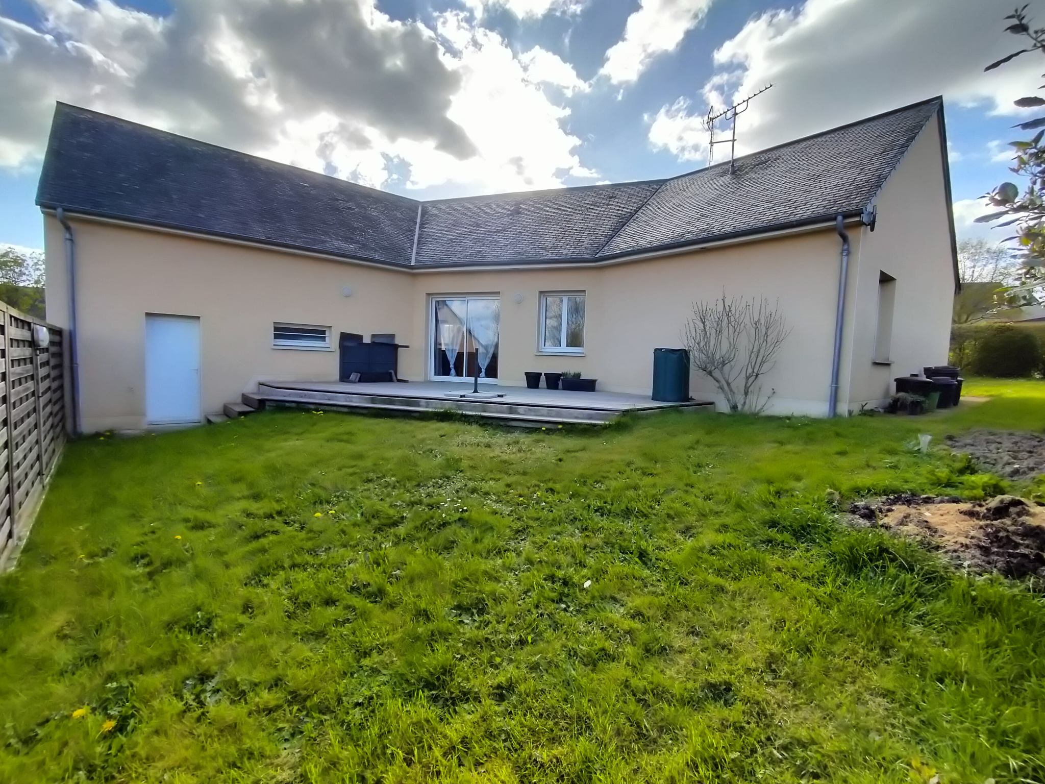 - Au RDC : un salon-séjour, une cuisine, une arrière cuisine, deux chambres, une salle de bains et un WC - A l'étage : deux chambres, une salle de bains, WC.