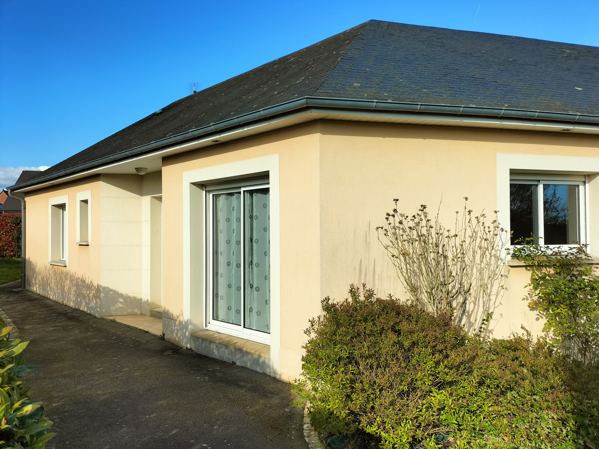 - Une loge en pierres ( ancienne étable) d'environ 120m² avec un préau donnant sur la Mayenne.