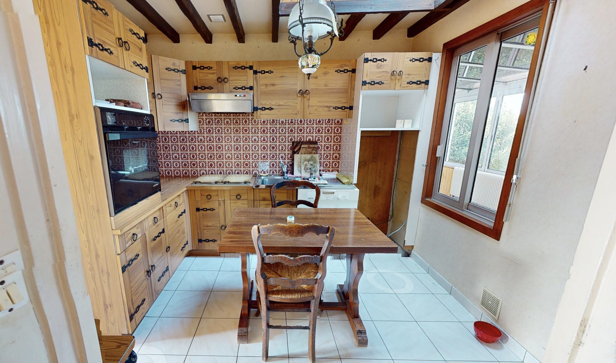 La bien de 95m², à rénover, est aménagée comme suit :