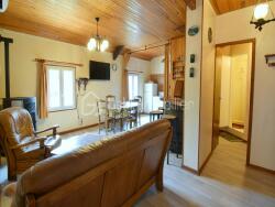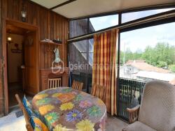 Le logement T3 situé à l'étage comporte un grand séjour avec cuisine ouverte, deux chambres, une véranda et une terrasse.