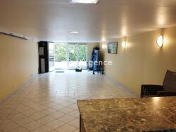 En rez de jardin: une très grande pièce avec poêle à bois, 2 chambres, salle d'eau et WC