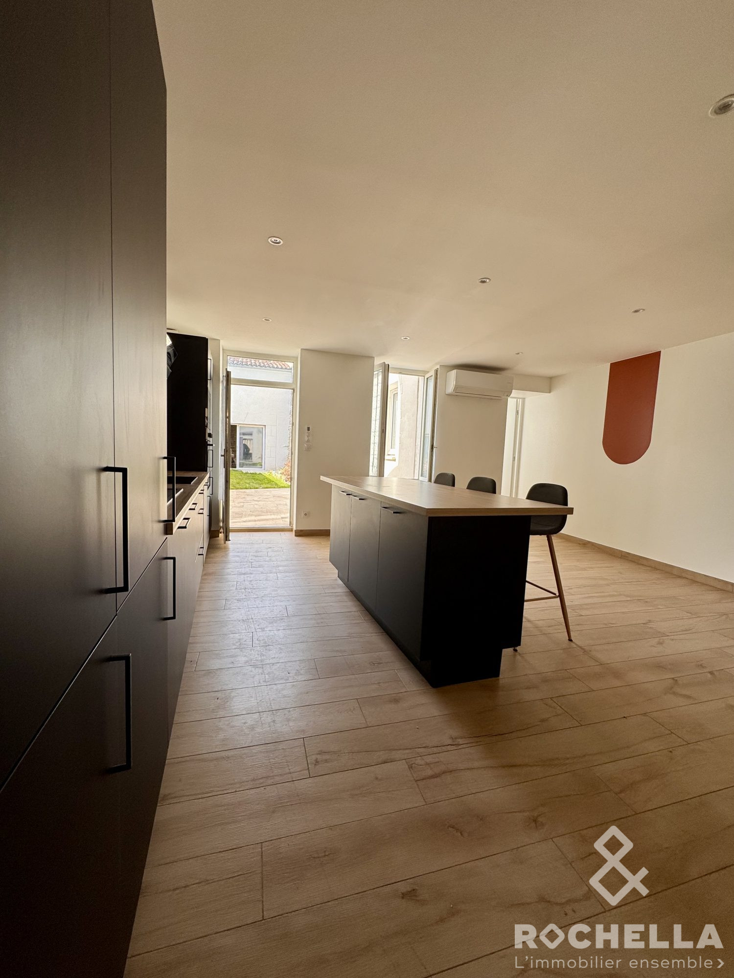 La seconde maison, actuellement louée, comprend au rez-de-chaussée un séjour avec cuisine ouverte aménagée/équipée et un WC.