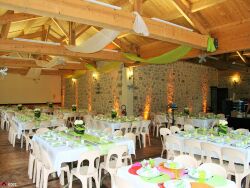 De plus, une salle de réception est accolée au logis avec deux espaces 150m² et 70m² (rénovée en 2010), un four à pain du XIIIème siècle, ainsi qu'un bureau et les sanitaires du camping (environ 40m²). La surface mentionnée se compose de 230m² pour l'habitation, 220m² de salle de réception et environ 40m² pour le bureau et les sanitaires, ainsi que des pièces supplémentaires.