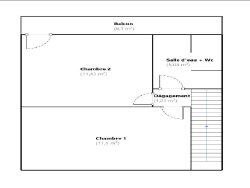 A l'étage : 2 chambres de 11,90 et 11,50 m2