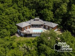 Ensemble immobilier de prestige, niché au coeur d'un environnement paisible, composé d'une élégante maison principale de plain-pied de 210 m2 et d'une seconde habitation indépendante de 75 m2. La maison principale s'ouvre sur une belle entrée agrémentée de rangements, puis sur une vaste pièce de vie baignée de lumière de près de 90 m2, où la cuisine ouverte, aménagée et équipée, invite à la convivialité. Une suite parentale avec dressing et salle d'eau, trois chambres supplémentaires -- dont deux avec dressing aménagé -- une salle de bain et deux WC complètent cet espace de vie résolument tourné vers le confort. À l'extérieur, une superbe terrasse en bois d'environ 200 m2 entoure la piscine chauffée et sécurisée (10 x 5 m). Une cuisine d'été aménagée d'environ 35 m2 avec pool house et WC prolonge les moments de détente en toute saison. La seconde maison, de plain-pied également, offre une pièce de vie lumineuse avec cuisine ouverte de 28 m2, trois chambres, une salle d'eau et un WC. Une terrasse avec un jacuzzi invite à profiter du calme environnant. L'ensemble dispose d'un double garage de 39 m2, le tout sur un vaste parc paysager de 2 300 m2, en lisière de forêt et à l'abri des regards. Prestations haut de gamme pour ce bien parfaitement entretenu, idéal pour une famille nombreuse, un projet locatif ou une profession libérale. Un lieu rare, où espace, élégance et sérénité se rencontrent.