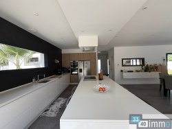 Ensemble immobilier de prestige, niché au coeur d'un environnement paisible, composé d'une élégante maison principale de plain-pied de 210 m2 et d'une seconde habitation indépendante de 75 m2. La maison principale s'ouvre sur une belle entrée agrémentée de rangements, puis sur une vaste pièce de vie baignée de lumière de près de 90 m2, où la cuisine ouverte, aménagée et équipée, invite à la convivialité. Une suite parentale avec dressing et salle d'eau, trois chambres supplémentaires -- dont deux avec dressing aménagé -- une salle de bain et deux WC complètent cet espace de vie résolument tourné vers le confort. À l'extérieur, une superbe terrasse en bois d'environ 200 m2 entoure la piscine chauffée et sécurisée (10 x 5 m). Une cuisine d'été aménagée d'environ 35 m2 avec pool house et WC prolonge les moments de détente en toute saison. La seconde maison, de plain-pied également, offre une pièce de vie lumineuse avec cuisine ouverte de 28 m2, trois chambres, une salle d'eau et un WC. Une terrasse avec un jacuzzi invite à profiter du calme environnant. L'ensemble dispose d'un double garage de 39 m2, le tout sur un vaste parc paysager de 2 300 m2, en lisière de forêt et à l'abri des regards. Prestations haut de gamme pour ce bien parfaitement entretenu, idéal pour une famille nombreuse, un projet locatif ou une profession libérale. Un lieu rare, où espace, élégance et sérénité se rencontrent.