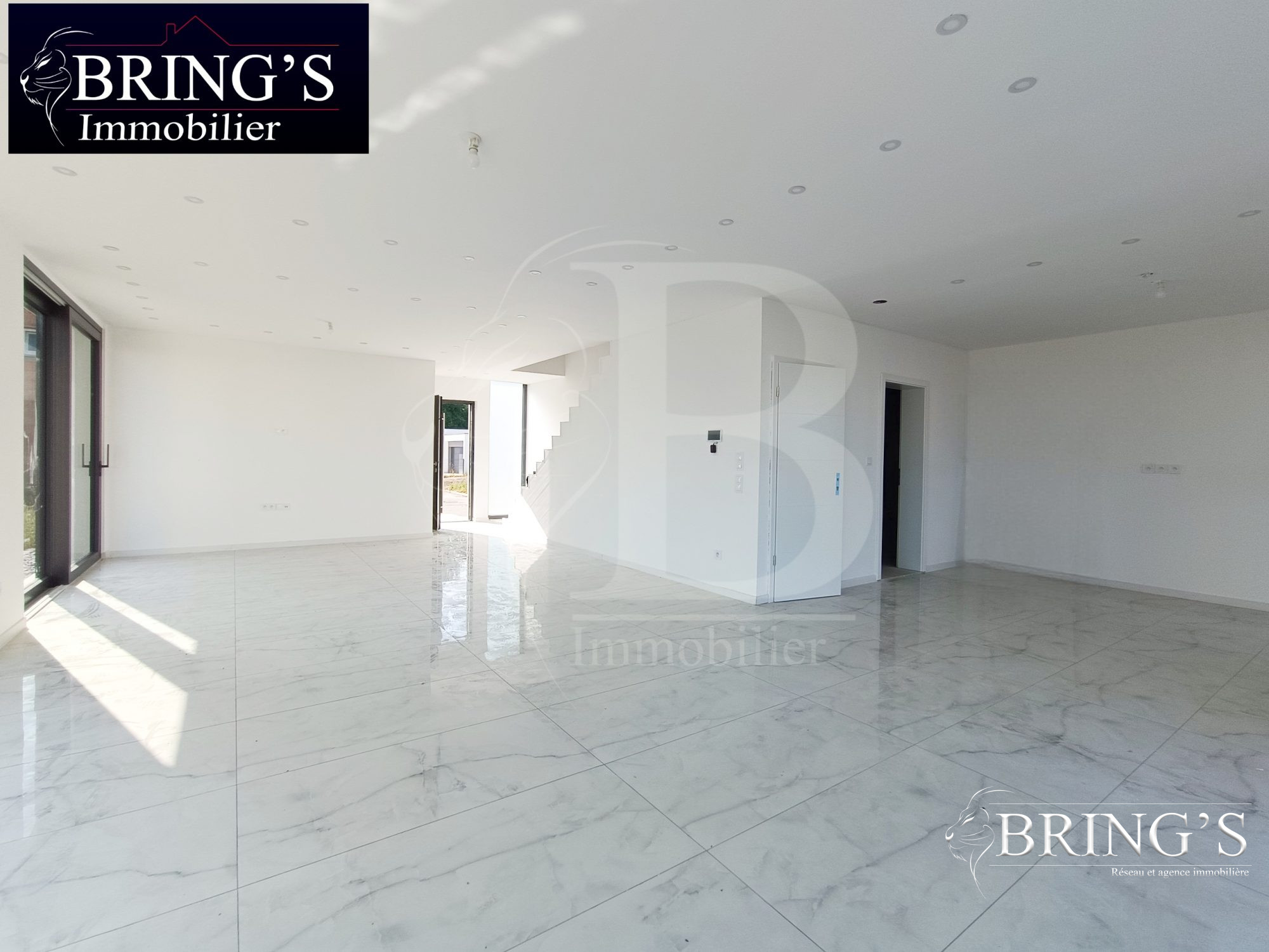 Dès l'entrée, vous serez charmé par un intérieur aux lignes actuelles et élégantes. Le hall d'entrée fonctionnel mène à un espace de vie ouvert, baigné de lumière grâce aux larges baies vitrées. Le séjour, en parfaite harmonie avec une cuisine moderne et entièrement équipée, crée un lieu de vie convivial et esthétique, idéal pour recevoir ou profiter du quotidien. La cuisine, dotée d'un îlot central et de finitions soignées, séduit par son style et sa praticité.