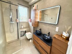 Côté nuit, vous disposez de deux chambres confortables, dont une suite parentale avec sa salle de bains et son dressing intégré, offrant un espace de repos agréable et bien pensé. La salle d'eau supplémentaire contemporaine, équipée d'une douche à l'italienne, complète cet étage.