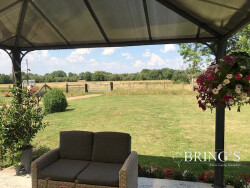 En exclusivité avec Bruno Léon, découvrez une ferme équestre, un véritable havre de paix et de tranquillité, idéal pour ceux qui rêvent d'un retour aux sources tout en bénéficiant du confort moderne. Construit en 1850 et rénové en 2023, ce bien d'exception vous offre une surface habitable de 215 m² (141m2 maison principale et 75 m2 pour maison secondaire), sur deux niveaux en plain-pied. Imaginez-vous dans ce séjour lumineux de 48 m², baigné de lumière naturelle grâce à ses grandes ouvertures en bois et aluminium. La cuisine, aménagée et équipée, est indépendante, parfaite pour les amateurs de gastronomie qui aiment cuisiner dans un espace dédié. Les cinq chambres, dont certaines offrent une vue imprenable sur la campagne environnante, vous garantissent des nuits paisibles et réparatrices. Le corps de ferme dispose de deux salles de bains et d'une salle d'eau, ainsi que de trois toilettes indépendantes, assurant confort et intimité pour toute la famille. Le jardin, d'une superficie de 120 000 m², est un véritable écrin de verdure, parfait pour les enfants qui peuvent y jouer en toute sécurité et pour les adultes qui souhaitent se détendre. La terrasse, orientée plein sud, est l'endroit idéal pour profiter des beaux jours et organiser des repas en plein air. Le corps de ferme est doté d'un chauffage individuel, garantissant une température agréable en toute saison. Les ouvertures en bois et aluminium, ainsi que les portes à double vitrage, assurent une isolation optimale et une protection contre les nuisances sonores. Le grenier, spacieux, offre de nombreuses possibilités d'aménagement, que ce soit pour créer une chambre supplémentaire, un espace de loisirs ou un bureau. Le terrain est piscinable, vous permettant de réaliser votre rêve de piscine privée pour des moments de détente inoubliables. Le stationnement est aisé avec quatre places intérieures et quatre places extérieures, garantissant la sécurité de vos véhicules. Ce corps de ferme, situé dans un cadre idyllique, est à proximité de toutes les commodités nécessaires à une vie confortable. À seulement 5 minutes à pied, vous trouverez une maternelle, une école élémentaire, une alimentation générale et un médecin généraliste. Plusieurs restaurants se trouvent à 10 minutes en voiture. Un arrêt de bus est également accessible en 5 minutes en voiture, facilitant vos déplacements quotidiens. De plus, la fibre est éligible, vous assurant une connexion internet rapide et fiable. Ne manquez pas cette opportunité unique de vous offrir un cadre de vie exceptionnel, alliant charme authentique et modernité.