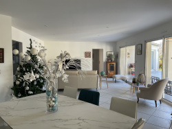 Au calme, très belle maison individuelle en parfait état comprenant : hall d'entrée, vaste pièce de vie avec 2 baies, cuisine US aménagée / équipée, arrière-cuisine, salle d'eau + WC, dressing et deux belles chambres. A l'étage : palier, deux chambres (placards) et salle de bains + WC. Garage attenant de 38 m2 avec auvent. Le tout sur un magnifique terrain arboré de 1350 m2 avec piscine, cuisine d'été, forage et abri jardin. Chauffage au sol par PAC. Gare TER reliant La Rochelle à 500 m.