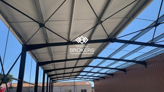 Construction parpaing parois et toit bardage métallique simple peau, non chauffé, dalle charge lourde, portes sectionnelles 4,50*4m pour chaque lot avec compteurs individuels. Hauteur sous plafond 8,1m haut de pente, 5,2M bas de pente, 380v, skydômes, accès PL portail électrique.