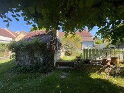 À l'étage, deux chambres et un grenier vous attendent, offrant un potentiel d'aménagement supplémentaire selon vos envies. La maison bénéficie d'un environnement calme et d'un terrain clos et arboré de 1 628 m², parfait pour profiter des journées ensoleillées.