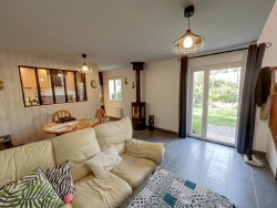 Une maison d'habitation comprenant: Au rez-de-chaussée: Séjour avec poêle à bois, cuisine équipée A l'étage: 2 paliers distincts desservant 2 chambres, 2 salles d'eau, 2 water-closets. Dépendance de 33 m2 (avec une partie chambre et sanitaire lavabo, douche et water-closet). Un grand garage de 47 m2 et une buanderie. Le tout sur un terrain arboré de 434 m2. A 350m à pied du centre et des plages.
