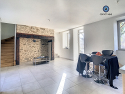 Charmante maison en pierre entièrement rénovée offrant de plain-pied une pièce de vie avec cuisine aménagée, une chambre avec salle d'eau, buanderie ; à l'étage deux chambres, salle d'eau, un bureau. Terrasses, deux caves, une dépendance. Terrain arboré d'environ 2 000m2. Chauffage Pompe à chaleur. Disponible. Loyer mensuel hors charges : 780EUR Charges mensuelles avec régularisation : 73EUR (ordures ménagères + entretien pompe à chaleur + vidange fosse septique + alarme) Dépôt de garantie : 780EUR Honoraires agence : 760EUR.