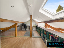 A 10 minutes de bus de la gare d'Oullins, vivez comme dans une maison avec cet appartement occupant les deux étages supérieurs d'une petite copropriété aux faibles charges. Bien récemment rénové de 161 m² au sol (127,78 m² Carrez), offrant un séjour cathédral avec cuisine ouverte de 51 m², parquet massif, poêle à bois et belle luminosité. Trois chambres de 12 à 17m², salle de bain, WC indépendants et rangements. À l'étage, deux espaces lumineux d'environ 23 m² (mezzanine, bureau ou 4? chambre) avec un coin buanderie et WC aménageable en 2è salle d'eau. Côté extérieurs, 2 terrasses Est/Ouest de 45 m² et 50 m². Stationnement en sus. Proche commerces et transports : Carrefour et Grand Frais à 10min à pied ; Arrêt de bus au pied de la résidence pour une connexion directe aux métros B et D ainsi qu'à Perrache.
