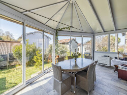 À l'étage, la maison dévoile son coeur de vie. Une pièce principale lumineuse d'environ 36 m², réunissant cuisine ouverte et salon / séjour, invite naturellement aux moments de partage. Dans son prolongement, une véranda chauffée et climatisée, d'environ 19 m² devient une véritable pièce supplémentaire, baignée de lumière et agréable en toute saison.