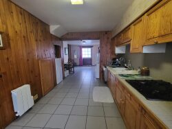 Maison de ville comprenant : au rez-de-chaussée, entrée dans salle avec cuisine aménagée, séjour et salon avec cheminée-insert donnant sur petit cour, salle d'eau avec wc. A l'étage : salle de bains avec wc, trois chambres. Grenier au-dessus avec ballon d'eau chaude.