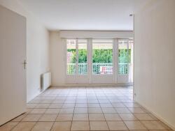 Séjour salon avec cuisine ouverte de 31 m2 donnant sur balcon de 8 m2, chambre de 10 m2, salle de douche, WC et son garage individuel en sous-sol.