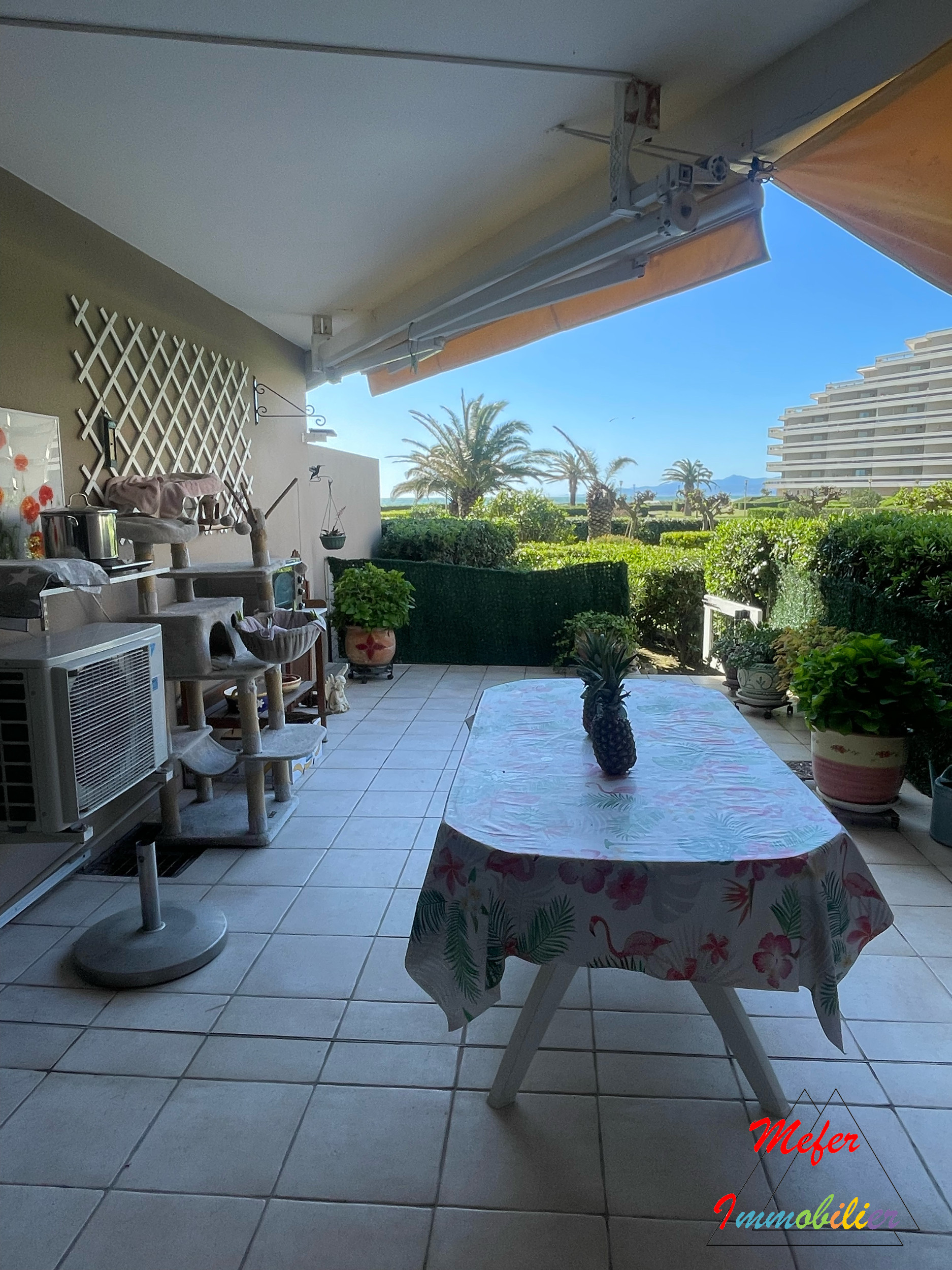 Sur la presqu'île de la lagune, au sein de l'une des résidences les plus prisées de Saint-Cyprien plage, superbe appartement deux pièces de 35m2 offrant tout le confort et les prestations attendues d'une résidence de standing sécurisée. Il comprend un séjour avec cuisine entièrement équipée, une spacieuse chambre avec placard et une salle de bains avec wc. Sur toute sa largeur, l'appartement est doté d'une superbe terrasse de 30m2 sans vis à vis et vue sur mer. Belles prestations : climatisation, volets roulants électriques, double vitrage, 2 locals à vélos. Élégante et aux lignes épurées, la piscine est à l'image de la résidence. Elle profite de larges plages en travertin et espaces ombragés qui accueillent de nombreux bains de soleil. L'appartement et la résidence dans son ensemble accusent un parfait état d'entretien. Vendu entièrement meublé. Un garage de 15m2 complète ce bien d'exception à l'environnement très privilégié. Les informations sur les risques auxquels ce bien est exposé sont disponibles sur le site Géorisques : www.georisques.gouv.fr