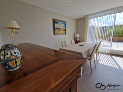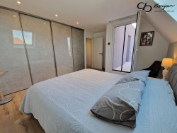 La visite démarre par une large entrée avec penderie et placard intégré puis se poursuit sur un espace de vie chaleureux de 46 m2. Cette pièce constituant le coeur du bien et concentrant le séjour, la salle à manger ainsi que la cuisine avec ilot central, elle bénéficie de plusieurs accès à la terrasse panoramique ainsi que de grandes baies vitrées assurant une lumière constante quelle que soit la saison. La cuisine équipée allie quant à elle modernité et équipements haut de gamme. Le tour du propriétaire se poursuit dans la chambre à coucher parentale de 16 m2 avec dressing et accès terrasse, puis dans une seconde chambre de 10m2 avec accès extérieur également. La salle d'eau comporte une douche à l'italienne, un meuble double vasque ainsi qu'un espace buanderie permettant d'y loger astucieusement vos appareils électroménagers.