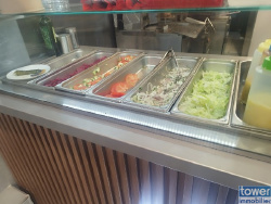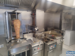 Équipement complet : Extraction performante (400mm), gaz triphasé, comptoir réfrigéré, broche à kebab, plaque de cuisson, grill à viande, double friteuse. Capacité de stockage optimale : Armoire réfrigérée positive et négative, deux congélateurs, frigo à boissons et une petite cave. Aménagement clé en main : Tout est déjà en place pour que vous puissiez démarrer votre activité sans délai ni investissement supplémentaire.