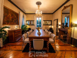 Cette propriété d'exception, nichée sur la commune de Francin aux portes de Chambéry est un joyau rare et secrètement préservé. Une maison de Maître alliant le charme de l'ancien au raffinement contemporain sur 687m² utiles, dans un sublime cocon verdoyant de 6045m². Conçue pour offrir confort, convivialité et art de vivre, elle séduit par ses volumes généreux, ses prestations haut de gamme et la beauté rare de son environnement. Le rez-de-chaussée dévoile de magnifiques espaces de réception. Découpés autour d'un vaste hall d'entrée : un salon lumineux aux proportions harmonieuses, une élégante salle à manger, une cuisine familiale chaleureuse entièrement équipée, un bureau confortable et une buanderie. Le majestueux escalier en pierre donne accès aux différents niveaux avec l'élégance d'un hôtel particulier. Le premier étage dessert en premier lieu un grand salon feutré et enveloppant, actuellement pensé en salle de jeux et disposant d'un balcon donnant sur le parc. Ce niveau se poursuit dans la suite des maîtres d'environ 50m² , offrant un dressing, une salle de bains avec baignoire et une chambre. A l'opposé, une seconde chambre avec salon, salle d'eau et buanderie. Le deuxième étage, récemment rénové, se compose de cinq suites avec salle d'eau privative. Celles-ci ont été habilement pensées pour offrir un confort soigné et luxueux. Minutieusement décorées avec goût, chacune s'habille de matériaux haut de gamme et propose une identité singulière. Le sous-sol voûté, accessible depuis l'extérieur ou par l'ascenseur, accueille un bar, une salle de dégustation, une cave à vin et une piscine intérieure. A l'extérieur, le parc paysager invite à la détente et à la contemplation face aux montagnes. Là encore, les prestations sont à la hauteur : piscine extérieure avec bain de soleil, cuisine d'été, petit green de golf, allée théâtrale, carport et cour de stationnement. Située à quelques minutes du centre de Chambéry et à seulement une heure de l'aéroport international de Genève, dans un secteur résidentiel prisé, la propriété bénéficie d'un accès rapide aux commodités, à la gare TGV, aux axes autoroutiers. Idéale pour un hôtel particulier, une maison d'hôtes ou une demeure familiale. CLASSE ENERGIE : C / CLASSE CLIMAT : C Montant moyen estimé des dépenses annuelles d'énergie pour un usage standard, établi à partir des prix moyens des énergies indexés sur les années 2021, 2022, 2023 : entre 5.650 Euros et 7.730 Euros. Les informations sur les risques auxquels ce bien est exposé sont disponibles sur le site Géorisques : www.georisques.gouv.fr Contact : Emerick +33 7 63 07 83 55 Emerick PASINI-SCHAUBHUT (EI) Agent Commercial - Numéro RSAC : 844 195 123 - Thonon-les-Bains.