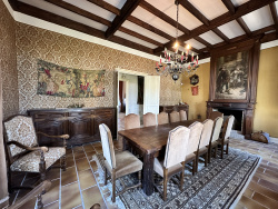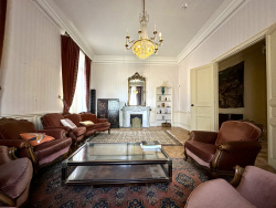 La Résidence Élégante maison de maître d'environ 300 m2 habitables, répartie sur deux niveaux. La demeure a su préserver tout le charme de son architecture d'époque : belles hauteurs sous plafond, plafonds à la française, cheminées anciennes et volumes généreux. Le rez-de-chaussée propose des espaces spacieux et lumineux, sublimés par une hauteur sous plafond de 4 mètres. Il se compose de deux salons ornés de cheminées en marbre, d'un bureau, d'une vaste cuisine avec arrière-cuisine, ainsi que de toilettes invités.Un superbe escalier en pierre d'origine mène au premier étage, où l'on découvre un somptueux plafond cathédral culminant à 8 mètres, orné d'un lustre en cristal. À l'étage, l'espace nuit comprend quatre chambres et trois salles de bain (dont une suite attenante), ainsi que deux WC. Chaque pièce dévoile des éléments architecturaux remarquables tels que fenêtres à meneaux et cheminées d'époque, avec vue dégagée sur le parc privatif. Deux grandes terrasses permettent de profiter pleinement des beaux jours. Le domaine dispose également d'un court de tennis et d'une piscine à rénover, offrant un agréable espace de détente extérieur.