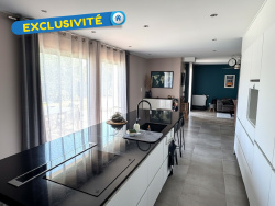 Découvrez cette magnifique maison de plain-pied, construite en 2020, qui allie modernité, confort et originalité. Située dans un environnement paisible, elle séduit par son architecture contemporaine et son agencement harmonieux. Une véritable entrée vous accueille avec un grand placard et s'ouvre sur une pièce de vie baignée de lumière, agrémentée d'une cuisine ouverte, entièrement aménagée et équipée. Grâce à une baie vitrée à galandage, l'espace se prolonge naturellement vers une terrasse en bois de 60 m2, parfaite pour savourer les beaux jours. Attenante à la cuisine, une arrière-cuisine/buanderie offre un accès direct au garage de 30 m2, équipé d'une porte sectionnelle motorisée. Côté nuit, la maison comprend quatre chambres avec placards intégrés, dont une suite parentale avec dressing et salle d'eau privative. Une seconde salle d'eau avec WC ainsi qu'un WC indépendant complètent cet espace. À l'extérieur, profitez d'un espace détente entièrement clos et paysagé de 615 m2, agrémenté d'une terrasse en bois, d'une piscine semi-enterrée et d'un jardin soigné. Ce bien rare sur le secteur conjugue élégance, confort et sérénité. Vous rêvez d'une maison récente, sans les contraintes de la construction ? Cette propriété est faite pour vous ! Prestations haut de gamme et finitions impeccables : Allée pavée, portail motorisé, clôture occultante, terrain engazonné, grande terrasse, piscine semi-enterrée, cuisine équipée avec plan de travail en granit et hotte intégrée. Un véritable bien clé en main, où tout a été pensé pour votre confort.