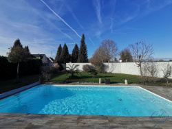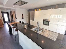 Construite en 2017 avec des matériaux de qualité, cette superbe maison contemporaine d'une surface de 169 m2 habitables est bâtie sur un grand terrain de 10,72 ares, agrémenté d'une piscine. Aménagée sur deux niveaux avec le RDC de plain-pied, elle se compose comme suit : Dès l'entrée, vous pourrez apprécier le volume de la pièce de vie de 64 m2 baigné de lumière grâce aux grandes baies vitrées orientées Sud et Ouest ! La cuisine est totalement équipée et son îlot central vous promet des moments de convivialité ! Vous trouverez ensuite une chambre parentale avec son dressing et une salle de bains avec baignoire balnéo, et grande douche à l'italienne. Puis enfin, une 2e chambre avec dressing, une buanderie et un WC indépendant. Au 1er étage, vous trouverez une mezzanine, deux chambres et une salle d'eau avec douche à l'italienne et WC. Un double garage de 34 m2 avec porte motorisée, une cave d'environ 25 m2 et un vide sanitaire complètent l'ensemble. Piscine chauffée (8 x 4 - profondeur 1,50m). Grande terrasse dallée avec pergola bioclimatique Aspects techniques : Construction de 2017 par Roger Huber, avec isolation extérieure de 15 cm en polystyrène. Chauffage : plancher chauffant PAC air-eau au RDC et au 1er. Fenêtres : en triple vitrage et volets motorisés sur l'ensemble. Coup de coeur assuré ! vous n'avez plus qu'à y poser vos valises !