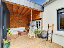 Idéalement située au coeur de Guipavas, à quelques pas seulement des commerces du centre-bourg, cette propriété d'exception est proposée en exclusivité par EXPERTIMO Brest, agence du Moulin Blanc. Dès les premiers instants, cette maison séduit par la qualité remarquable de sa rénovation et l'élégance de ses prestations. Entièrement repensée avec exigence, elle développe une surface habitable de 136 m2 sur une parcelle de 519 m2, offrant un cadre de vie à la fois intime, contemporain et parfaitement maîtrisé. Les extérieurs, soigneusement paysagés, ont été conçus comme un véritable prolongement de la maison. À l'abri des regards, ils invitent à la détente dans une atmosphère raffinée. Le patio, exposé Sud-Ouest, accueille une terrasse élégante, une pergola ouverte permettant de profiter des beaux jours en toute saison, ainsi qu'un espace bien-être rare intégrant un spa jacuzzi avec nage à contre-courant. À l'avant, un aménagement soigné accompagne un garage double de 33 m2 et permet également le stationnement d'un véhicule supplémentaire, en complément des espaces dédiés aux résidents du quartier. L'intérieur révèle une harmonie parfaite entre volumes, lumière et qualité des matériaux. La pièce de vie, baignée de lumière grâce à sa double exposition, offre un espace à la fois convivial et sophistiqué. La cuisine, aménagée et équipée avec une signature esthétique affirmée, s'organise autour d'un îlot central dinatoire et s'ouvre naturellement sur un espace salle à manger généreux ainsi qu'un salon chaleureux et intimiste. Le rez-de-chaussée propose également une suite parentale de grande qualité, comprenant une chambre confortable, un dressing et une salle d'eau privative, permettant une vie de plain-pied particulièrement recherchée. Un WC indépendant complète ce niveau. À l'étage, une mezzanine aménagée en espace détente ou lecture apporte une dimension supplémentaire de confort et distribue trois belles chambres ainsi qu'une salle d'eau. Un second WC indépendant vient parfaire l'agencement de cet espace nuit, idéal pour une vie de famille. La maison est équipée d'un système de chauffage au gaz à condensation et bénéficie d'un excellent classement énergétique. Aucun travaux n'est à prévoir : chaque détail a été pensé pour offrir un confort immédiat et durable. Cette propriété rare incarne parfaitement l'équilibre entre emplacement privilégié, prestations haut de gamme et qualité de vie. Une opportunité confidentielle sur le secteur, destinée aux acquéreurs en quête d'un bien clé en main aux prestations irréprochables.