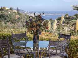 En exclusivité, Niché sur les hauteurs très prisées de Mandelieu, au coeur du prestigieux domaine sécurisé du Grand Duc, cet appartement de 4 pièces en rez-de-jardin se distingue par ses prestations haut de gamme : piscine, courts de tennis et club de fitness. Avec une superficie généreuse de 104 m2, ce bien rare offre un cadre de vie alliant raffinement et sérénité. Sa vaste terrasse couverte de 51 m2 et son jardin paysager privatif s'ouvrent sur une vue panoramique exceptionnelle embrassant la mer, la baie des Îles de Lérins et les collines de mimosas. L'agencement intérieur a été pensé pour un confort absolu : un hall d'entrée spacieux, un séjour lumineux de 32 m2, une cuisine indépendante aménagée, deux chambres avec leur salle d'eau privative, ainsi qu'une suite parentale d'exception avec vue mer, dressing, salle de bain raffinée et WC privatifs. Un toilette invité complète cet espace élégant, où chaque détail a été conçu pour conjuguer intimité et art de vivre. Un garage fermé et une cave complètent ce bien d'exception. Idéalement situé, à seulement 35 km de l'aéroport international de Nice et à quelques minutes des commodités, il réunit toutes les qualités d'un lieu unique. Un véritable joyau, destiné aux amoureux de vues à couper le souffle et de tranquillité absolue.