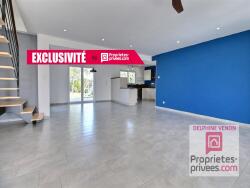 Au rdc : Pièce de vie de 75 m² comprenant séjour, salon avec cuisine ouverte aménagée et équipée, cellier, wc et lave mains, salle de bains avec wc suspendu, 3 chambres + 1 suite parentale avec salle d'eau attenante - A l'étage : Mezzanine avec espace bureau, chambre, salle d'eau, wc. Garage attenant, terrasse avec petite piscine. L'ensemble sur un terrain de 996 m² environ - Menuiseries pvc et alu à galandage - Chauffage au sol en rdc et clim réversible à l'étage. Budget : 349 900 euros Honoraires inclus 4.45 % TTC charge acquéreur soit 335 000 euros hors honoraires -