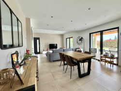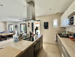 EXCLUSIVITE - Votre Agence L'IMMOBILIER CHEZ CECILE a la plaisir de vous présenter en EXCLUSIVITE sur la commune de Montauroux, dans un secteur calme et recherché, cette belle MAISON RECENTE, en position dominante, de type 5 pièces d'environ 125m2 habitables offrant de belles prestations et proche de toutes les commodités. Elle bénéficie d'une exposition SUD et d'une piscine sur un terrain plat et clôturé d'environ 880 m2. Au rez-de-chaussée, une pièce de vie spacieuse et lumineuse avec ses larges baies à galandages offre une vue vers la terrasse SUD et la piscine, une belle cuisine équipée avec îlot central vient parfaire cet espace. Le coin nuit se compose d'une grande chambre parentale avec dressing, d'une deuxième chambre, d'une belle salle d'eau et d'un wc indépendant. A l'étage, vous découvrirez deux chambres supplémentaires avec chacune des rangements, une salle de bains et un wc. Côté extérieur, le terrain est clos et paysagé. Une belle terrasse couverte donnant sur la piscine invite à la détente. Bien rare sur le secteur, avec de belles prestations (chauffe-eau thermodynamique, clim réversible, plancher chauffant et rafraîchissant, portail automatique, ...), pas de travaux à prévoir, tout-à-l'égout. PRIX DE VENTE : 595 000EUR frais d'agence inclus (honoraires charge vendeurs). Pour tout renseignement et visite, contactez L'IMMOBILIER CHEZ CECILE au 06 63 70 96 47.