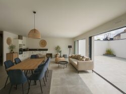 Découvrez cette maison construite et terminée début en 2025, clé en main (prestations haut de gamme), située dans le quartier très recherché de Zola, à la fois calme, familial et proche de toutes commodités. À quelques pas des transports en commun, des commerces et des écoles réputées, cette maison offre un cadre de vie privilégié. D'une superficie d'environ 150 m², elle propose de beaux volumes et une organisation idéale pour une vie de famille : Une grande pièce de vie lumineuse, ouverte sur une terrasse de 55 m² exposée Sud-Ouest, idéale pour profiter du soleil toute la journée. Une cuisine aménagée et équipée, ouverte sur le séjour. Une suite parentale en rez-de-chaussée. Une lingerie, un grand garage et de nombreux rangements complètent ce niveau. À l'étage : Trois grandes chambres avec penderies intégrées. Une spacieuse salle de bain avec baignoire et douche. Maison idéale pour une famille ou un jeune couple retraité en quête de calme, d'espace et de confort, à l'abri des regards tout en bénéficiant d'un accès rapide au centre-ville de Nantes.