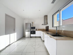 EXCLUSIVITE - Visite virtuelle sur demande ! Située à 5 minutes à pied des commerces, dans un environnement calme et tranquille, maison de plain pied d'environ 93 m² habitables. Celle-ci a été construite en 2022, avec un chauffage gainable, et qui est dotée d'un excellent DPE en classe A. Elle se compose d'une partie cuisine ouverte sur la pièce à vivre (pour une surface de 45m²) et permettant un accès direct à la terrasse exposée sud / ouest. La partie nuit quant à elle comprend 3 chambres et une salle de bain. Un garage et une buanderie complètent ce bien sur une parcelle de 357 m².