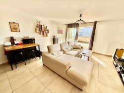 GEX 01170, en exclusivité, Très bel appartement type T2 de 49m2 avec une terrasse privative de 44m2 exposée plein sud. Il comprend : une entrée avec une penderie, une cuisine équipée ouverte sur le salon-séjour, une chambre avec un placard, une salle de douche avec wc. Tout l'appartement sort sur la terrasse. Chauffage individuel gaz de ville. Très bon état général. En annexe au sous-sol : un garage box fermé. L'appartement est situé dans une résidence récente et clôturée avec un portail. Matesa immobilier, agence immobilière Pays de Gex, vente et achat appartement GEX 01170. 'Les informations sur les risques auxquels ce bien est exposé sont disponibles sur le site Géorisques http://www.georisques.gouv.fr'.