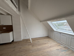 Au dernier étage d'une petite copropriété Appartement comprenant une cuisine aménagée ouverte sur séjour, une salle d'eau, une chambre, une chambre en mezzanine, un espace bureau mansardé. Faibles charges, écoles, RER C et commerces à pied.