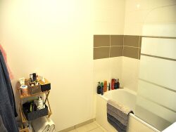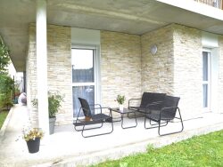 Appartement en RDC dans résidence récente, d'environ 73m2 comprenant, entrée, séjour double, cuisine équipée, 2 chambres, salle de bains, wc. Terrasse couverte, jardinet et place de parking. Vendu loué.
