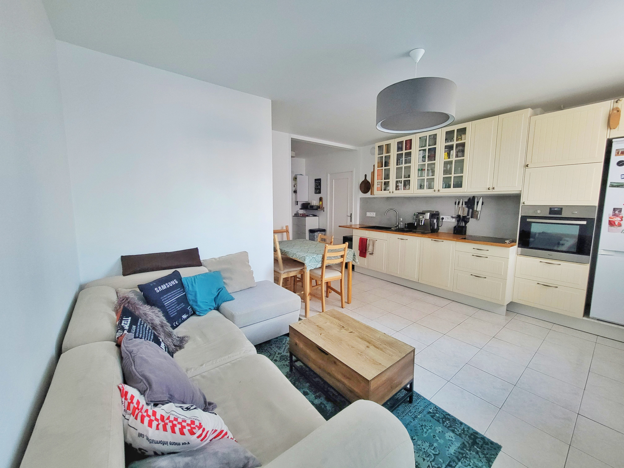 En plein centre du village au calme. Appartement duplex dans une petite copropriété de 62.55m2 loi carrez (64.35m2 au sol). Comme une maison de ville : salon, cuisine, wc au rdc, 2 chambres à l'étage avec salle d'eau et toilettes. Cour privative de 39m2. Très bien situé à proximité de toutes les commodités. Possibilité de louer un garage.