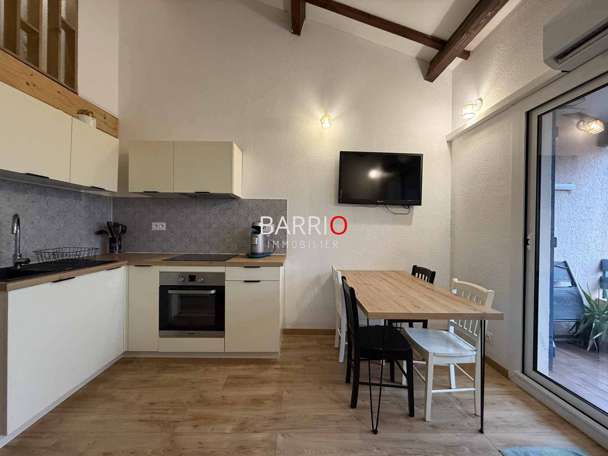 En parfait état, il se compose d'un séjour-salon avec cuisine équipée ouvrant sur une agréable terrasse, idéale pour profiter du climat méditerranéen. La partie nuit offre une chambre, une salle de bain et un WC séparé. La pièce de vie est climatisée.