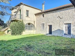 Cet ensemble en pierre à vendre, proche du centre de Ruoms est un produit rare. L'entrée se fait par un ancien portail en fer qui ne laisse pas imaginer un instant le potentiel de ce bien. C'est tout d'abord une maison d'environ 90 m² à rénover qui se présente à vous. Une fois la redistribution des pièces faite, elle se transformera facilement en un lieu de vie très agréable. Un peu plus loin, mitoyen à la première habitation, une grange en pierre abrite 2 plateaux d'environ 80 m². Une rénovation plus importante vous attend mais le charme est déjà là. Enfin, une deuxième grange en pierre plus petite divisée en 2. D'un côté un abris voiture d'environ 25 m², de l'autre une pièce d'environ 28 m² libre de tout projet. Ces 3 pépites évoluent sur 1 088 m² de terrain plat et entièrement clos. Très proche du cur de village, vous pourrez vous y rendre facilement à pied ou en vélo. Ne tardez pas pour visiter cet ensemble en exclusivité chez TOURRE IMMOBILIER. Prenons rendez-vous. Les + : Surface, centre village, proximité, grange en pierre, puits