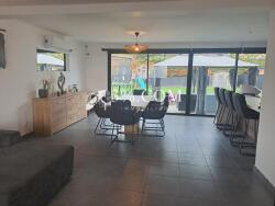 Au rez-de-chaussée, vous y trouverez une vaste pièce de vie lumineuse dotée d'une large cuisine équipée ouverte, d'un grand salon et d'un séjour avec un accès à la terrasse et au jardin.