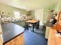 Une pièce de vie de 36 m2 avec cheminée avec une cuisine ouverte aménagée et équipée de 17 m2, une chambre avec sa salle d'eau attenante, un cellier/ buanderie attenant à la cuisine , wc.