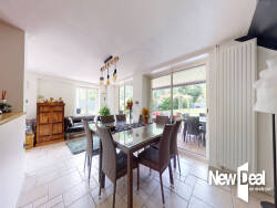 Un vaste salon-séjour de plus de 50 m2 avec cheminée insert, une grande cuisine