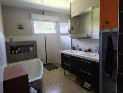 Située dans le Vallon de Marcillac, très belle villa de 2009 en ossature bois, construite sur une belle parcelle de terrain plate de 4310 m². D'une surface habitable d'environ 131 m², elle comprend une entrée avec placard et WC, un grand séjour de 25,56 m² environ avec coin cuisine de 15,57 m² environ et cellier sur l'arrière, un salon de 24,42 m² environ, un couloir avec grands dressings, trois chambres, une grande salle de bains avec baignoire, douche et WC. Le séjour et le salon ouvre sur une belle terrasse bois exposée Sud sur laquelle se trouve une pergola bio climatique. Un garage pour deux voitures de 43 m² environ avec portail motorisé et grand auvent complètent ce bien. Construction ossature bois, menuiseries alu double vitrage, volets roulants motorisés, plancher chauffant (géothermie) et poêle à bois, panneaux photovoltaïques pour l'eau chaude, assainissement individuel, DPE B. Le tout sur un beau terrain arboré et plat sur lequel se trouve un puits pour l'arrosage. Cette maison aux belles prestations, sans aucun travaux, de plain-pied, dans un environnement calme et sans nuisance saura vous séduire, une visite s'impose !