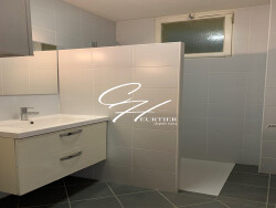 La salle d'eau, est dotée d'une grande douche, d'un meuble avec miroir lumineux. vous noterez la présence d'un fenestron pour une ventilation naturelle.